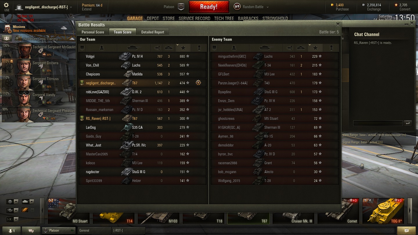 Non-Competitive tanks Match reported on 2015-04-04 18:57:57