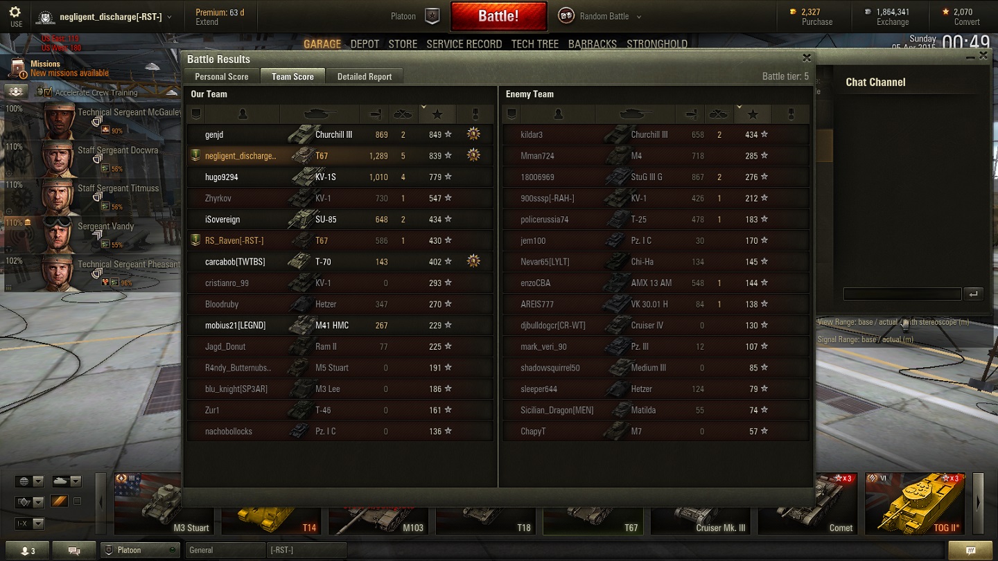 Non-Competitive tanks Match reported on 2015-04-05 18:56:26