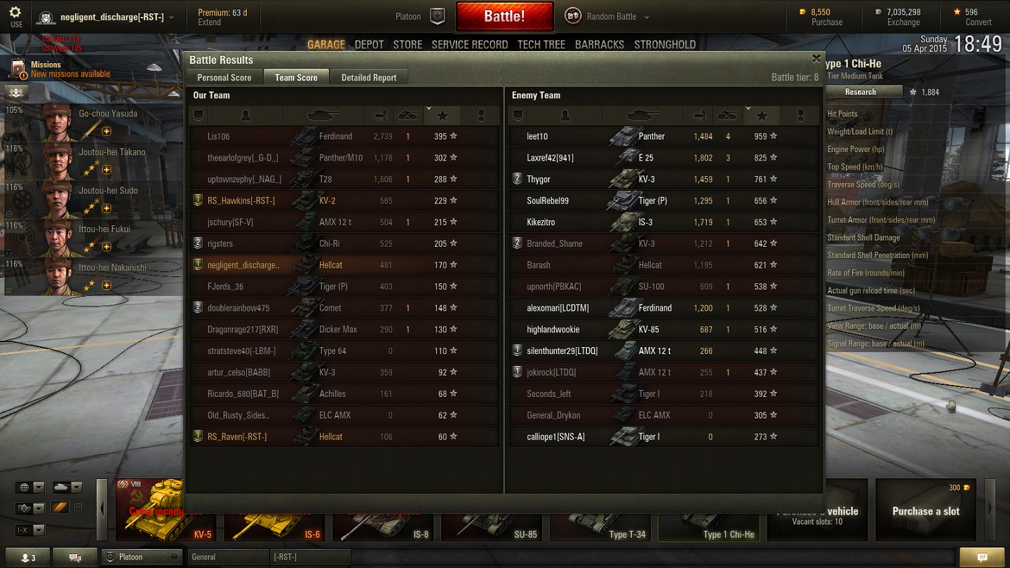 Non-Competitive tanks Match reported on 2015-04-05 19:33:54