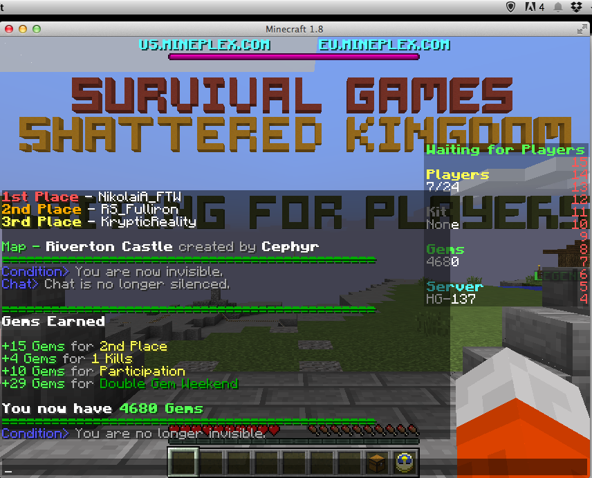 Testing the SP clan-tag based reports. I played Survival Games on Mineplex