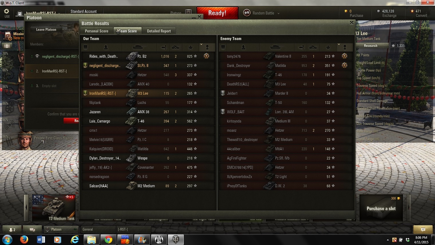 Non-Competitive tanks Match reported on 2015-04-11 21:17:33