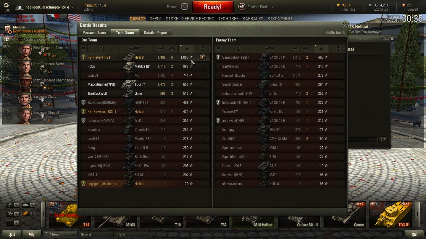 Non-Competitive tanks Match reported on 2015-04-16 13:18:27
