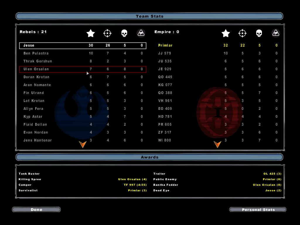 Battlefront II (2005) Match Statistics