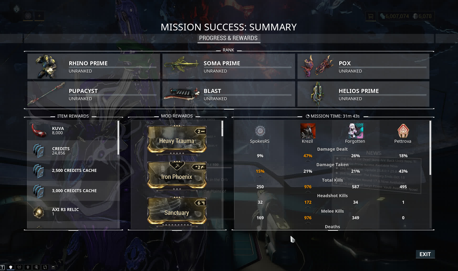 Warframe Match Statistics